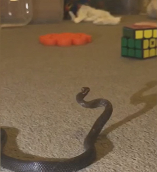 In a video she took the snake seems to rear its head, as it slithers alongside toys including a Rubik's Cube.