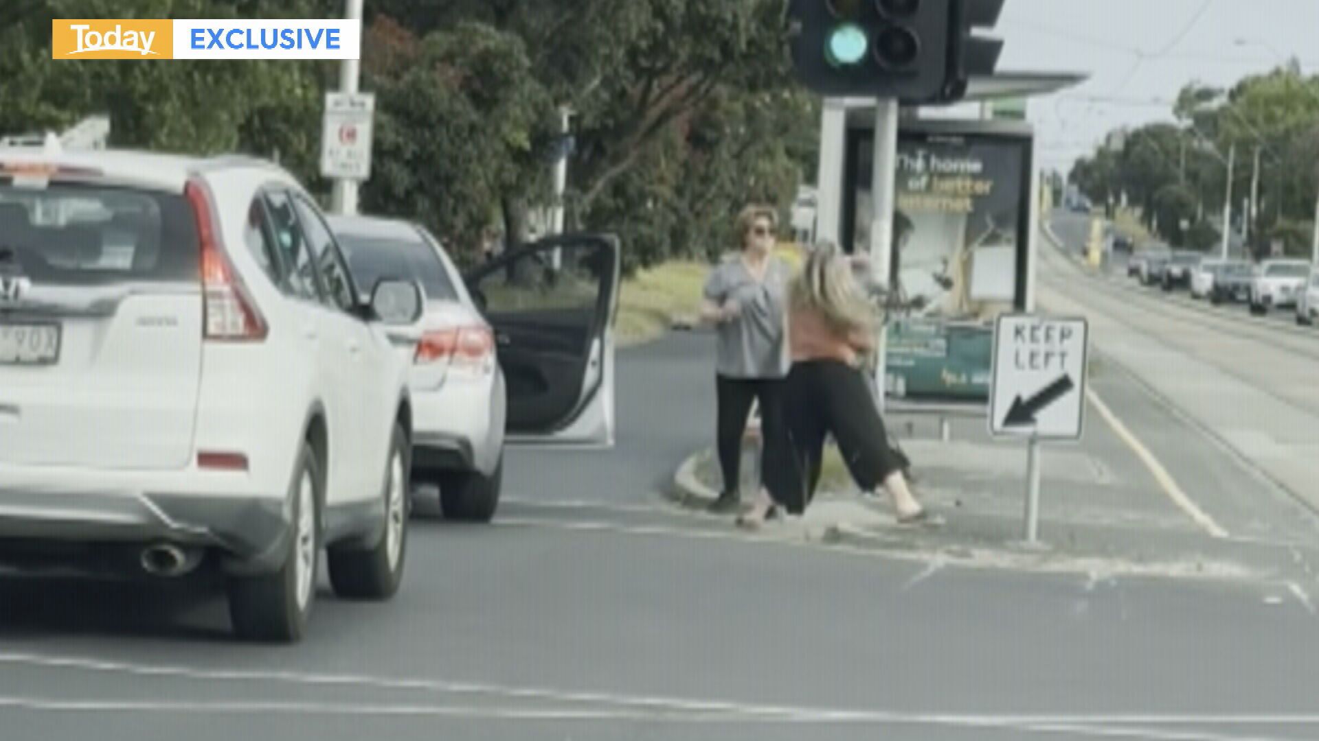 The exclusive vision, aired on Today, shows two women brawling on Brighton Road in Elwood, before bystanders rushed to stop them.