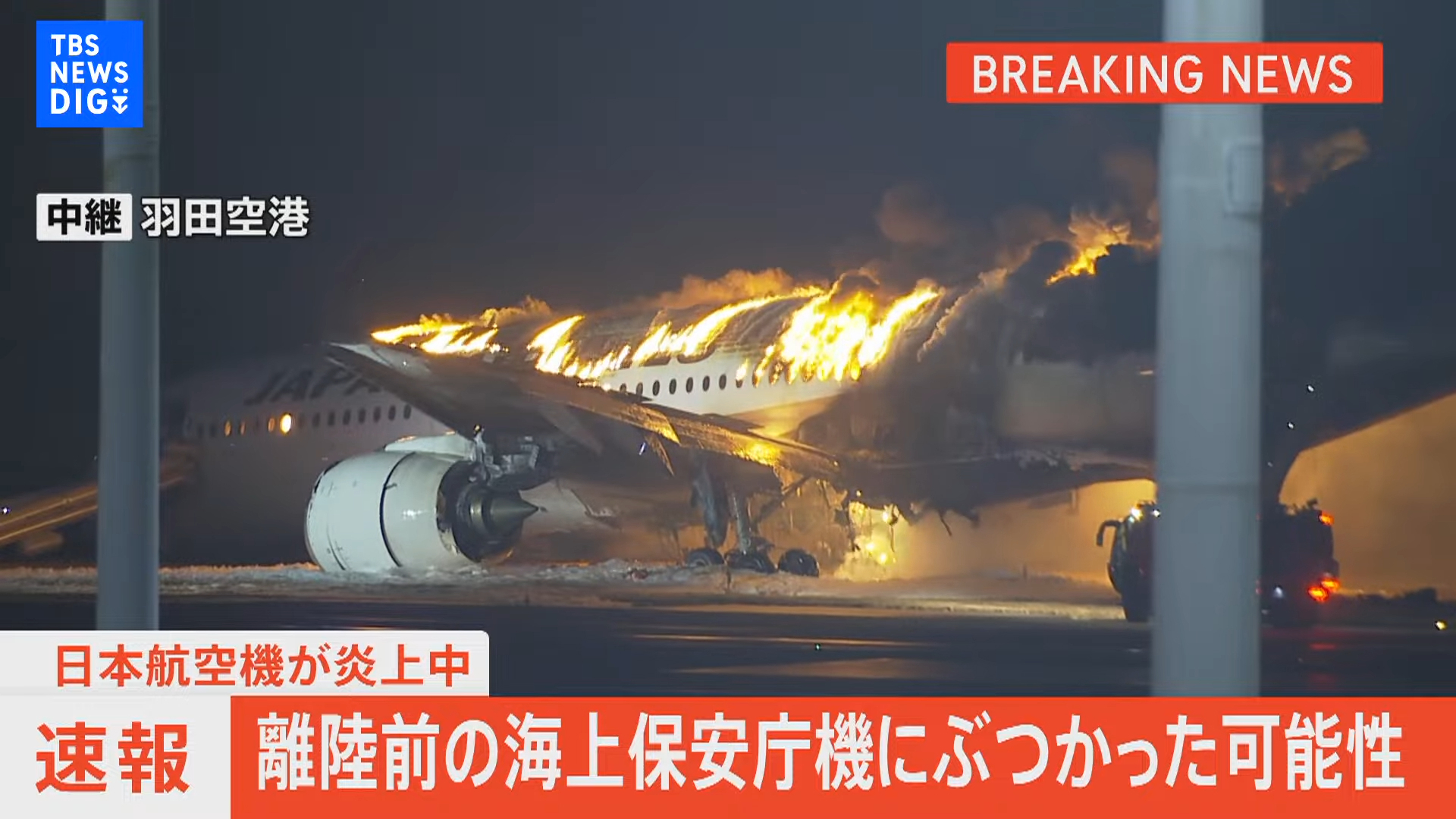 The JAL plane had flown from Shin Chitose airport near the northern city of Sapporo, and the coast guard Bombardier was preparing to depart for Niigata to deliver relief supplies to the central regions hit by powerful earthquakes on Monday that killed more than 60 people.